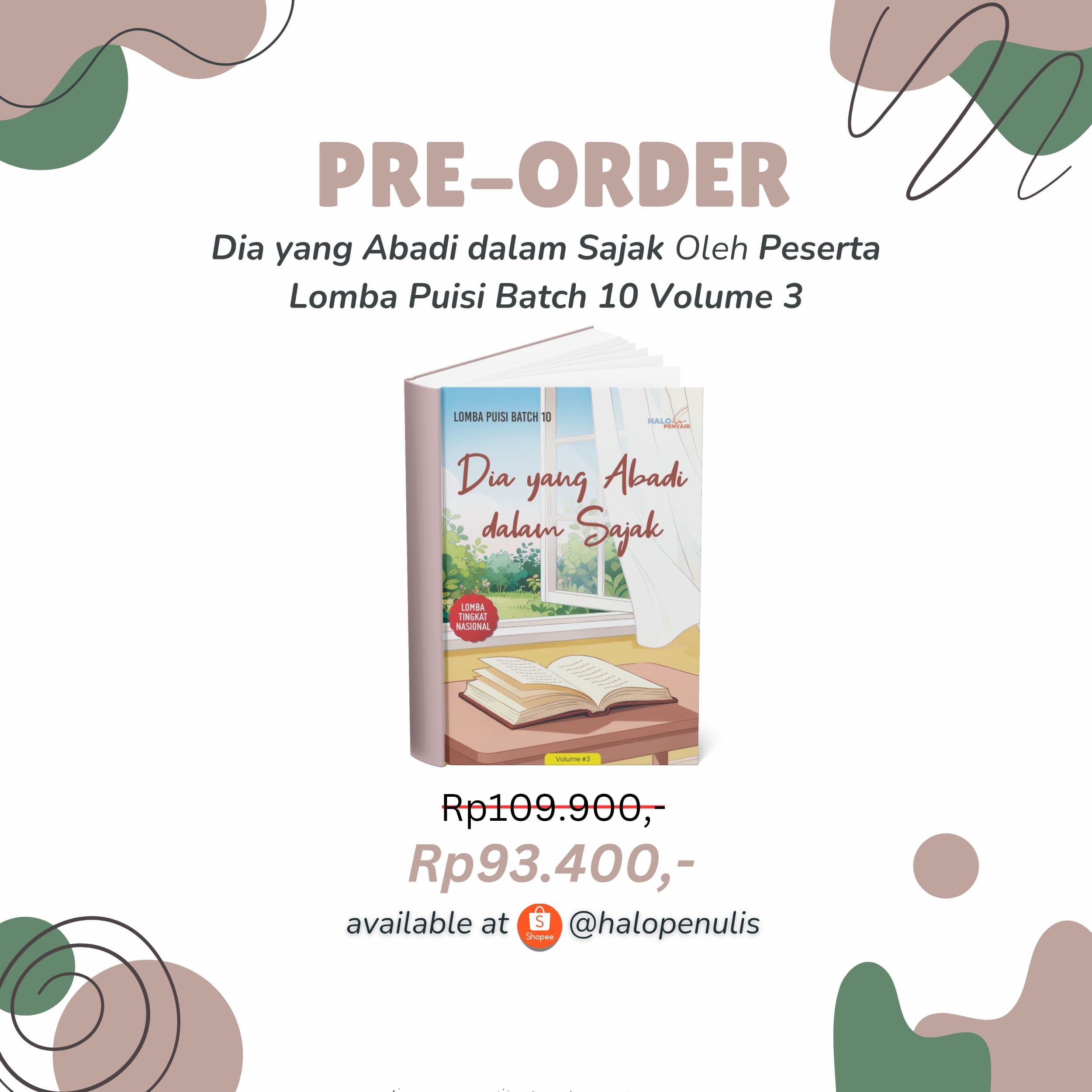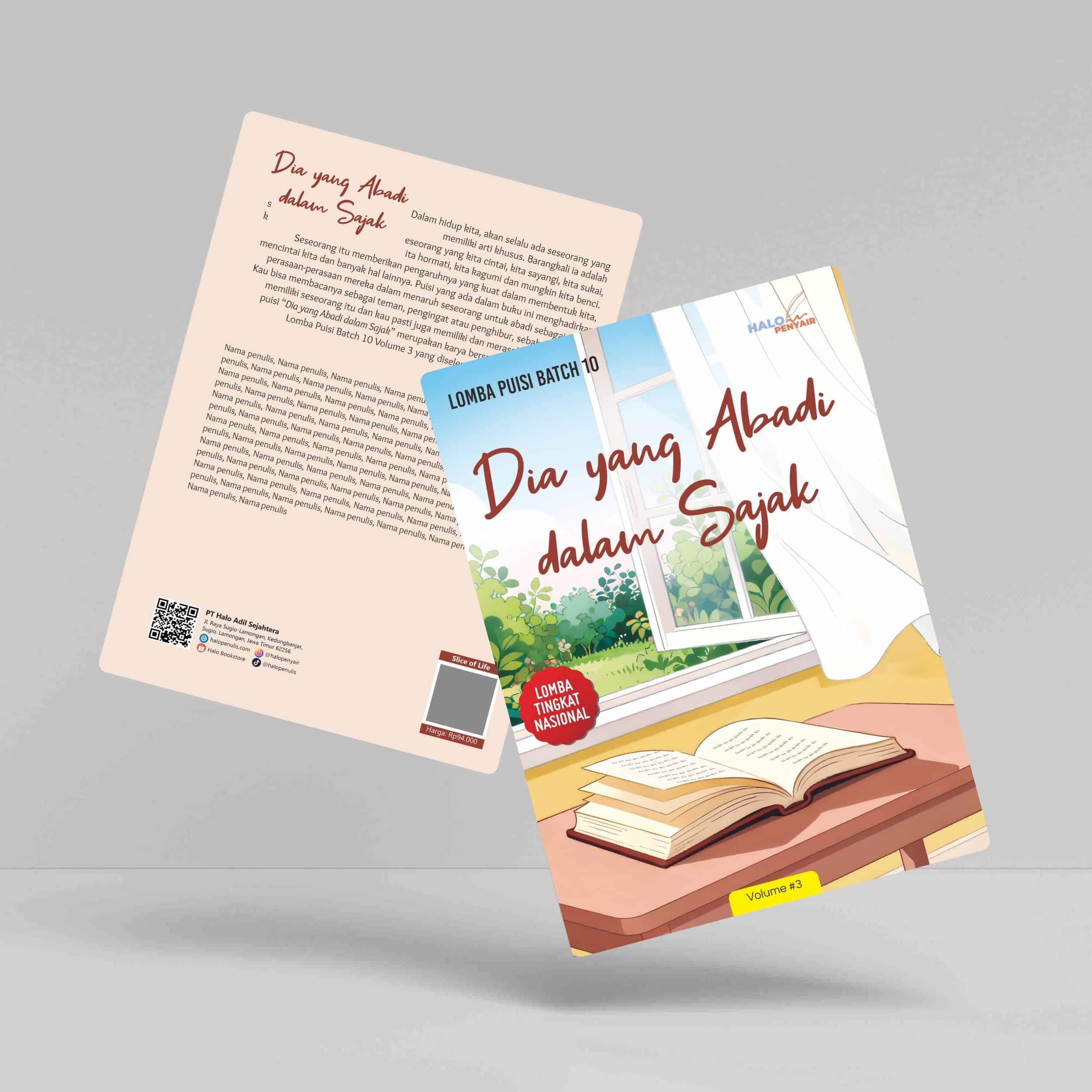 Antologi puisi “Dia yang Abadi dalam Sajak” merupakan karya bersama para penulis dalam Lomba Puisi Batch 10 Volume 3 yang diselenggarakan oleh Halo Penyair.