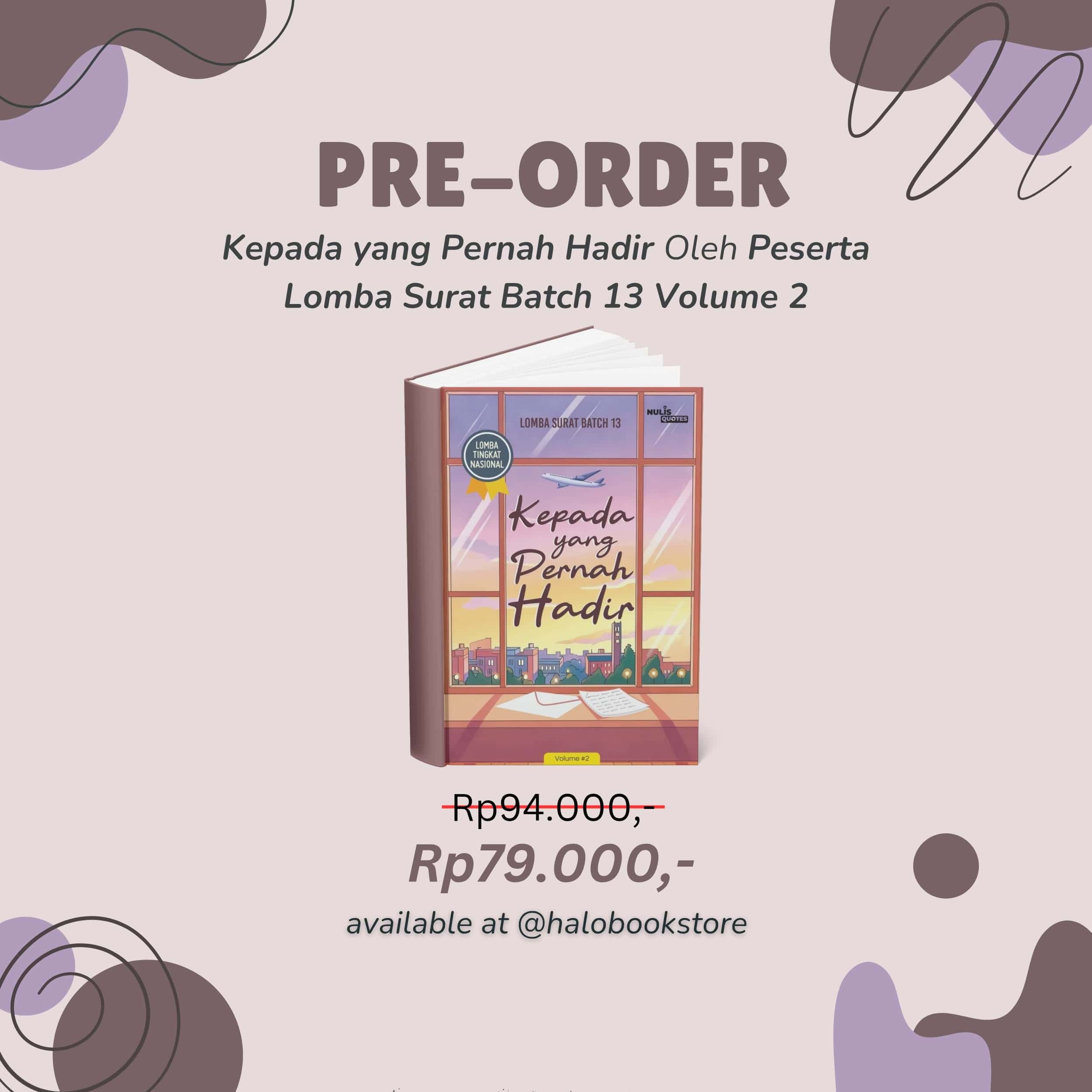 Antologi surat “Kepada yang Pernah Hadir” ini merupakan karya bersama penulis terpilih dalam event Lomba Surat Batch 13 Volume 2 yang diselenggarakan oleh Nulis Quotes.