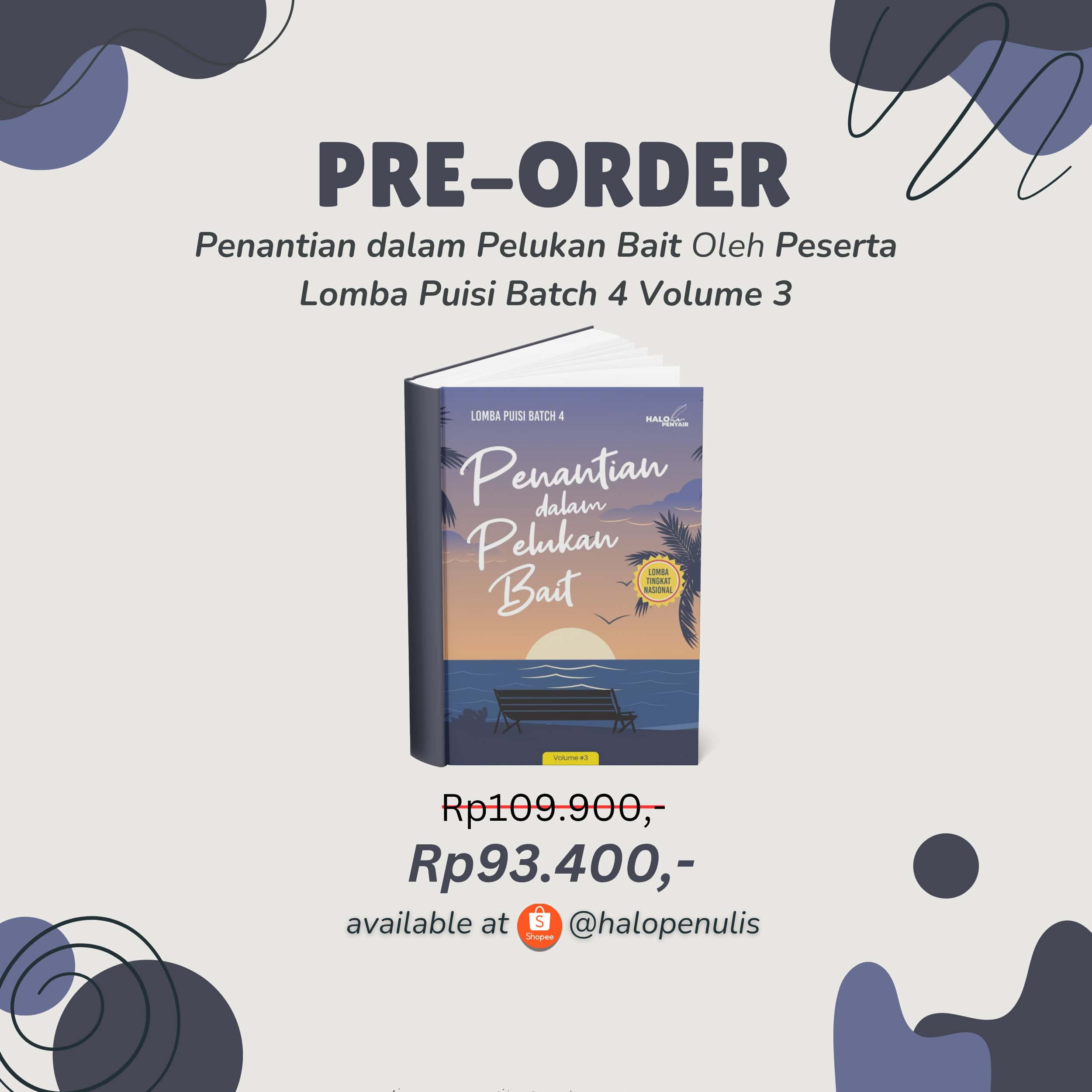 Buku ini akan mengajakmu melihat berbagai perasaan mendalam seseorang yang sedang menunggu, tentang bagaimana ia merasakan kesepian, kebahagiaan dan perasaan lainnya. Bagaimana pula ia belajar dan berharap dalam penantian itu. Antologi puisi “Penantian dalam Pelukan Bait” merupakan karya bersama penulis dalam Lomba Puisi Batch 4 Volume 3 yang diselenggarakan oleh Halo Penyair.