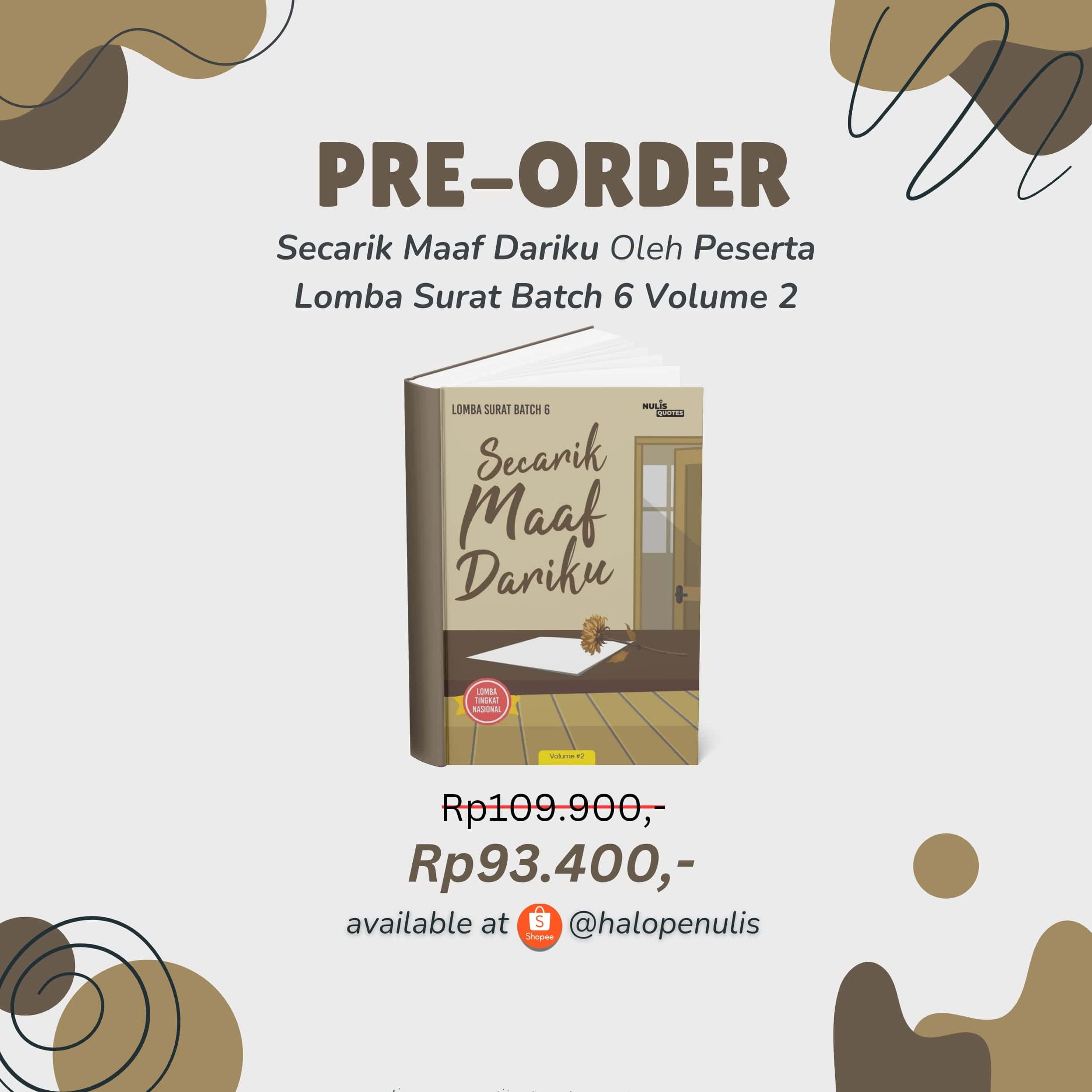 Antologi surat “Secarik Maaf Dariku” ini merupakan karya bersama penulis terpilih dalam event Lomba Surat Batch 6 Volume 2 yang diselenggarakan oleh Nulis Quotes.