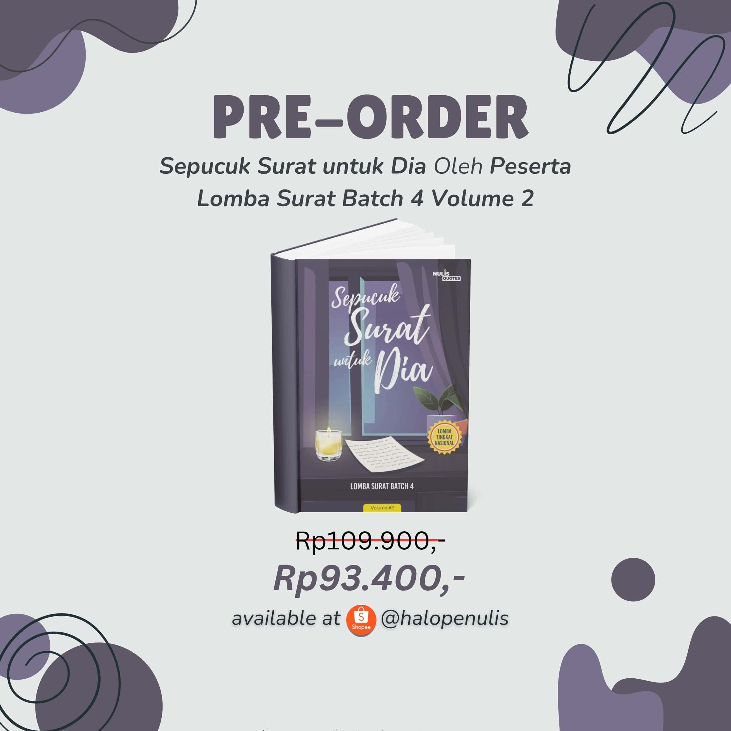 Antologi surat “Sepucuk Surat untuk Dia” ini merupakan karya bersama penulis terpilih dalam event Lomba Surat Batch 4 Volume 2 yang diselenggarakan oleh Nulis Quotes.
