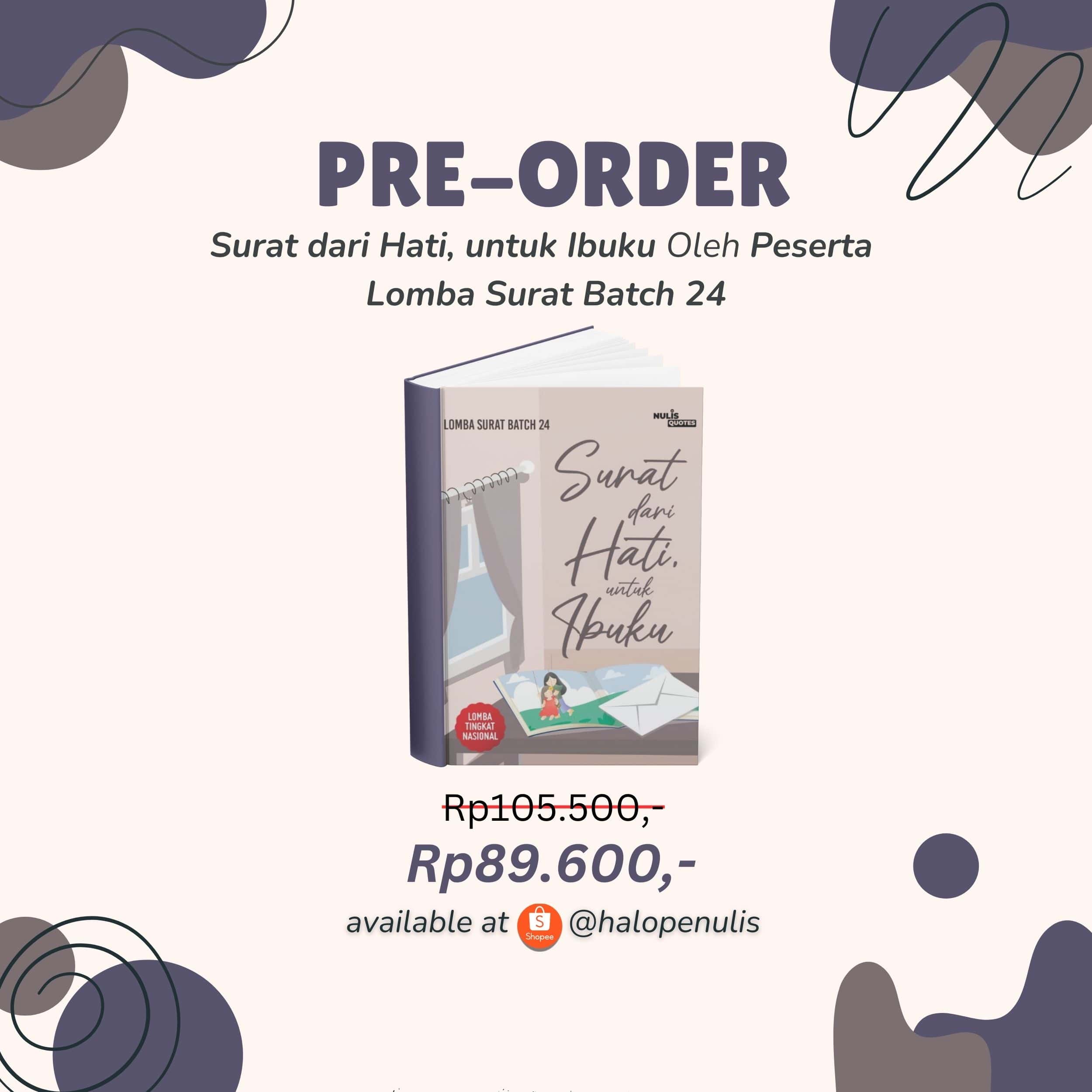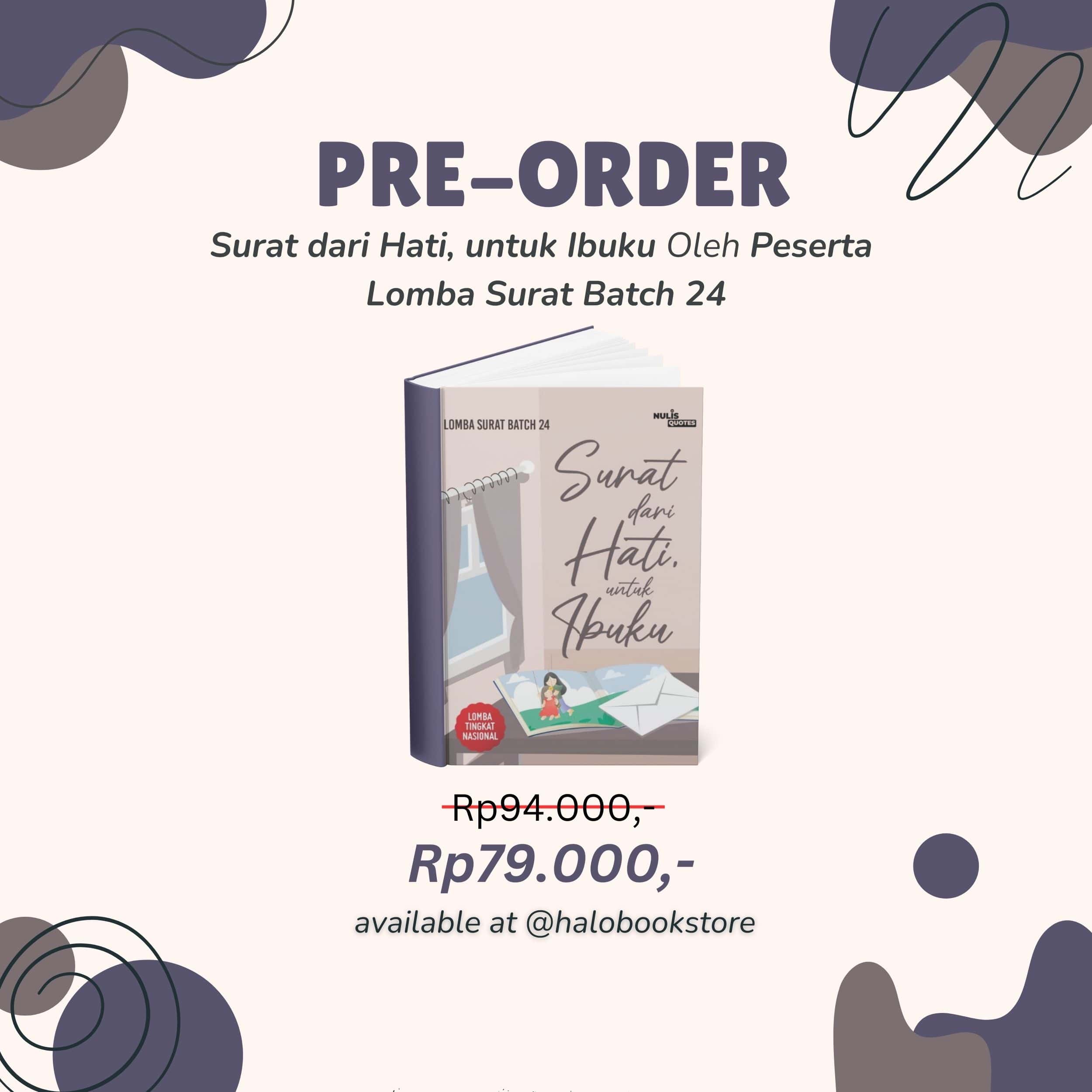 Antologi surat “Surat dari Hati, untuk Ibuku” ini merupakan karya bersama penulis terpilih dalam event Lomba Surat Batch 24 yang diselenggarakan oleh Nulis Quotes.